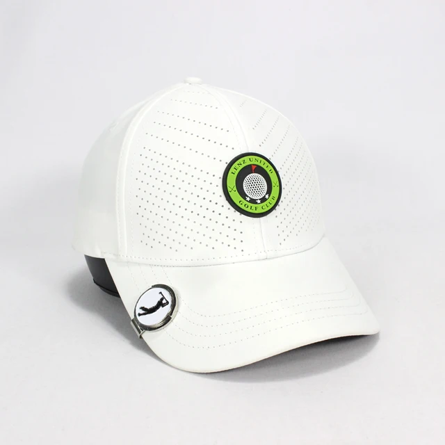 Custom Men Women 6 Panel White Rubber Patch Logo Perforated Laser Cutting Hole Drilled Baseball Hat Waterproof Sport Cap